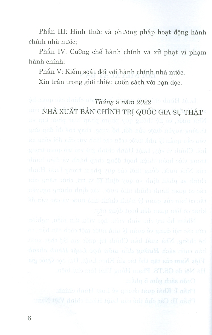 Hướng dẫn môn học luật hành chính Việt Nam Tác giả: . Phạm Hồng Thái (chủ biên) - . Nguyễn Ngọc Chí - TS. Nguyễn Quang Đức Xuất bản: 2022 Số trang: 362 Nhà xuất