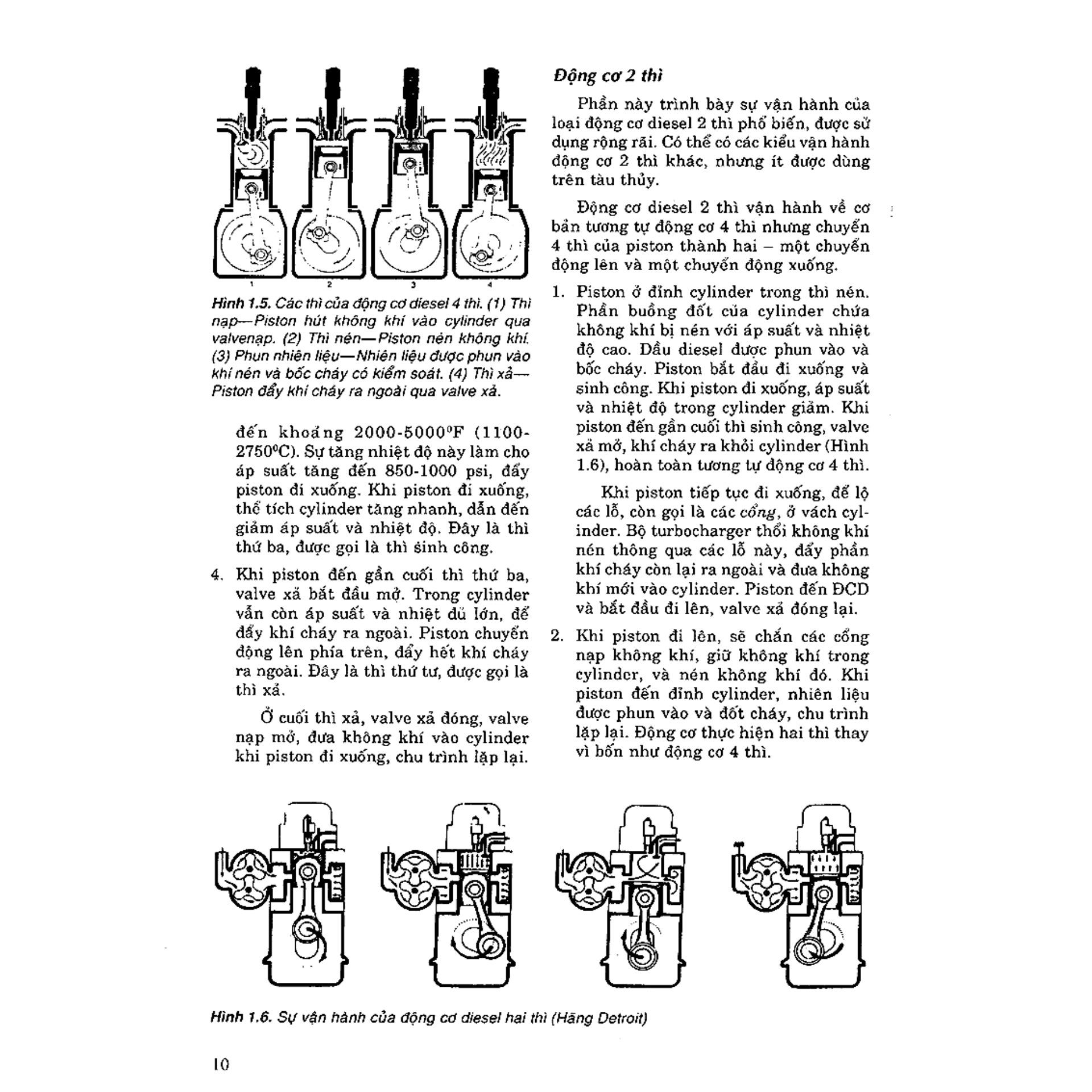 Ngày nay động cơ diesel được sử dụng rộng rãi trên các tàu thuyền hoạt động trên sông, ven biển, và ra khơi xa vài trăm hải lý. Động cơ diesel có độ tin cậy cao trong môi trường biển, tiết kiệm nhiên liệu tốt hơn động cơ xăng, hiệu quả hơn khi tàu thuyền có tải nhẹ đến tải toàn phần, khí thải ít ô nhiễm hơn, và tính an toàn cao hơn. Công suất động cơ diesel trên tàu thuyền hiện nay là từ vài chục đến vài trăm mã lực (HP), với nguyên lý vận hành, cấu tạo, yêu cầu bảo trì, và quy trình sửa chữa hầu như không khác nhau, dù có vài khác biệt giữa các nhà chế tạo động cơ (Detroit, Cummins, Caterpillar, Nhật,)
