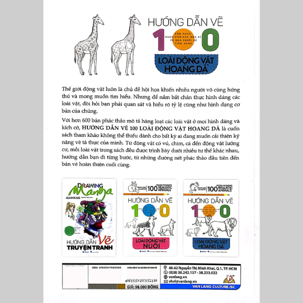 Với hơn 600 bản phác thảo mô tả hàng loạt các loài vật ở mọi hình dáng và kích cỡ, Hướng dẫn vẽ 100 loài động vật hoang dã là cuốn sách tham khảo không thể thiếu dành cho bất kỳ ai đang muốn cải thiện kỹ năng vẽ tả thực của mình. Từ động vật có vú, chim, cá đến động vật lưỡng cư, mỗi loài vật trong sách đều được trình bày dưới nhiều tư thế khác nhau, hướng dẫn bạn đi từng bước, từ những đường nét phác thảo đầu tiên đến bản vẽ hoàn thiện cuối cùng.