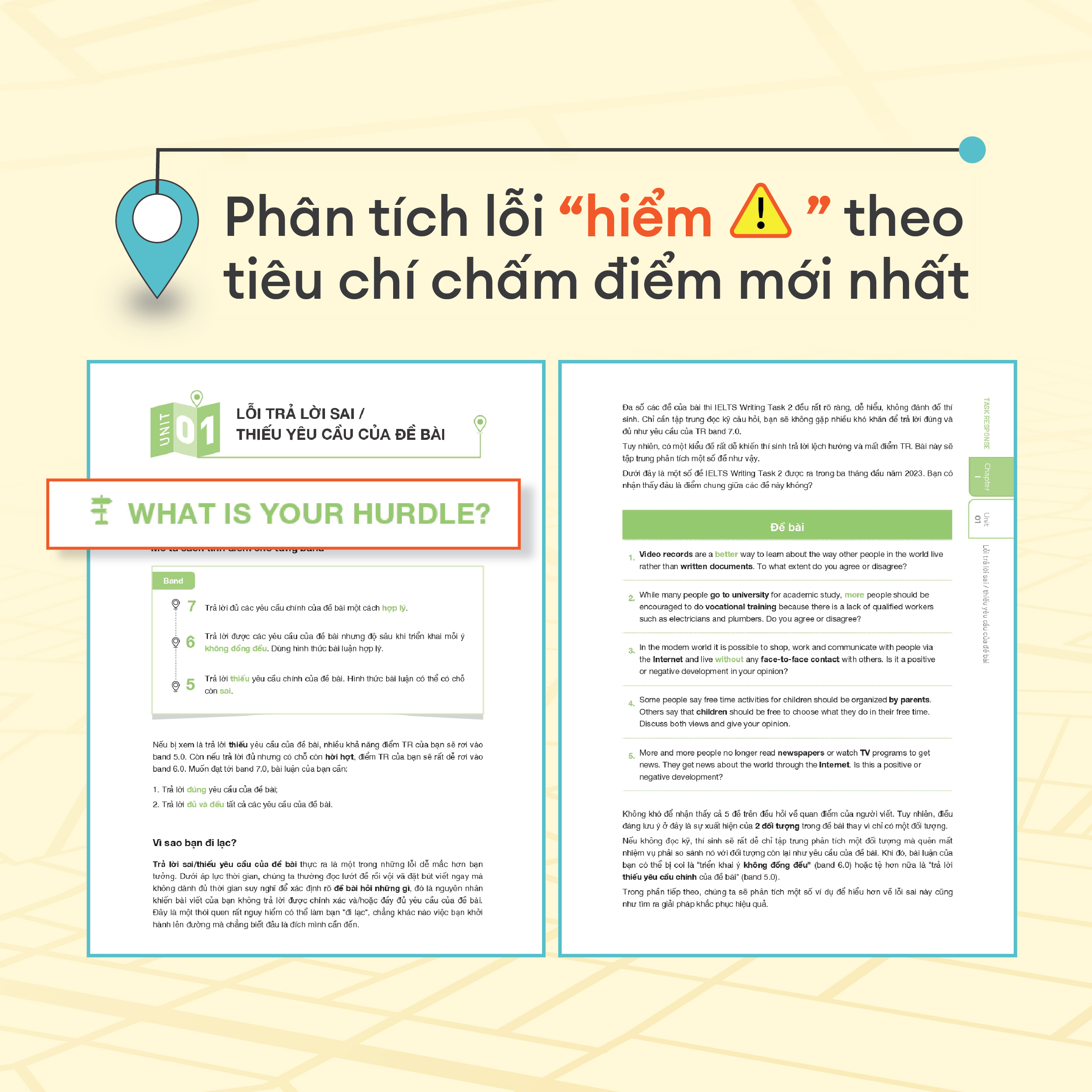 Viết luôn là kỹ năng khó nhất trong 4 kỹ năng mà bài thi IELTS đánh giá. Viết thế nào mới là hay, chẳng phải hay hay dở chỉ là quan điểm cá nhân thôi sao? Làm sao tôi biết được mình mắc lỗi gì và cần sửa thế nào? Có phải từ khó mới là từ “đắt”? Có vô vàn thắc mắc khiến người học hoang mang, bối rối khi đã thử đủ cách mà vẫn chưa thể cải thiện điểm số của bài thi viết. Với IELTS Writing Navigator, bạn sẽ được giải đáp gần như đầy đủ những thắc mắc như thế, từ đó xác định cho mình một lộ trình đỡ “rắc rối” nhất để đạt mức điểm kỳ vọng.