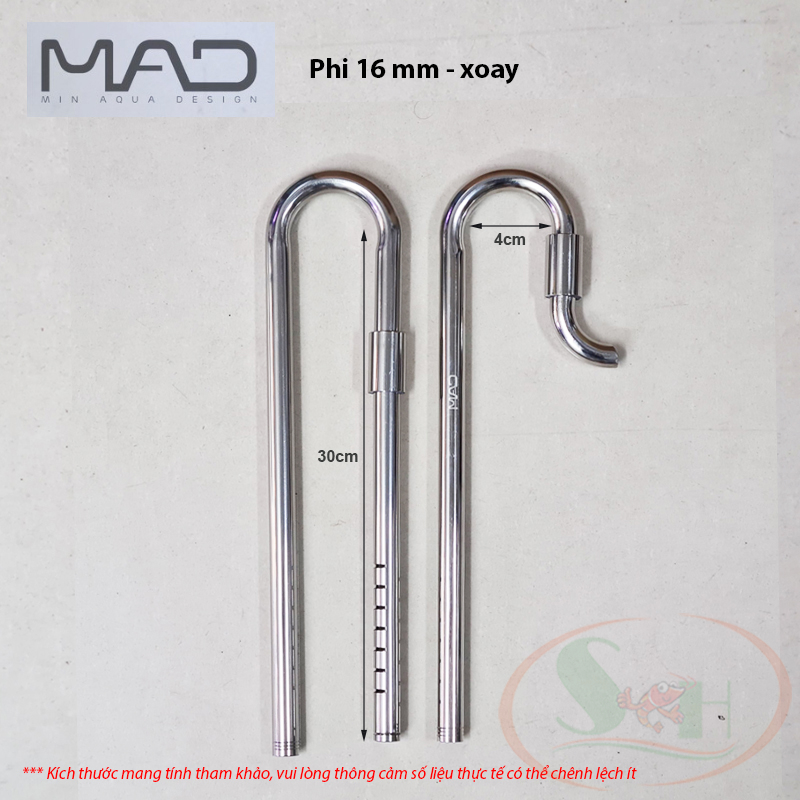 In out inox MAD được dùng để thay thế cho bộ in out nhựa có sẵn của các loại lọc bể cá giúp cho bể sang trọng hơn và thẩm mỹ hơn. Ngoài ra, quy cách Xoay có thiết kế 2 đầu in out vặn xoay được giúp điều chỉnh luồng thổi dòng theo ý muốn.