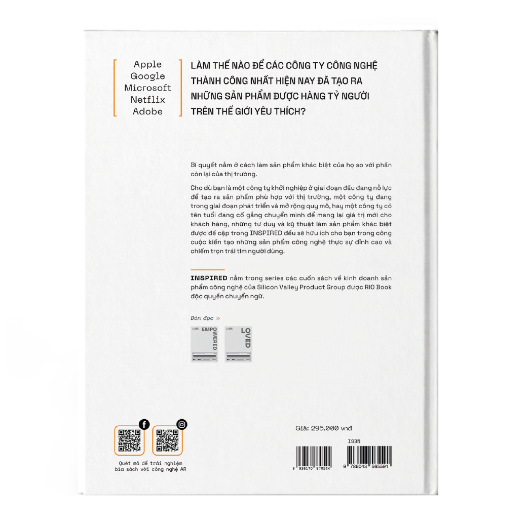 Với những bài học giá trị được đúc rút từ 20 năm kinh nghiệm của tác giả Marty Cagan - Founder của Silicon Valley Product Group cùng hàng chục casestudy từ giám đốc sản phẩm của các công ty công nghệ thành công nhất hiện nay như Microsoft, Tesla, Netflix, Adobe, Apple, Google, INSPIRED sẽ trở thành nguồn tài nguyên có giá trị nhất cho các chuyên gia xây dựng sản phẩm và các nhà quản lý công ty công nghệ. INSPIRED sẽ chỉ cho bạn cách “vặn to núm chỉnh” cho những nỗ lực phát triển sản phẩm của mình, để tạo ra các sản phẩm công nghệ khiến khách hàng yêu thích.