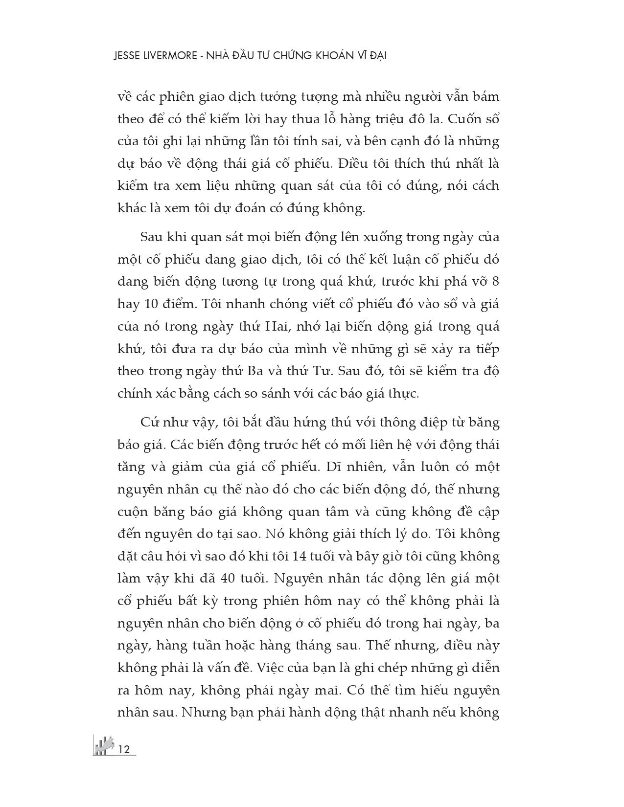 Cuốn sách “Jesse Livermore - Nhà đầu tư chứng khoán vĩ đại” lần đầu tiên được xuất bản vào năm 1923, đến ngày nay vẫn còn nguyên giá trị bất chấp sự thay đổi không ngừng của thị trường, với sự ra đời của nhiều phương pháp giao dịch hiện đại và sự hỗ trợ của công nghệ vào các kỹ thuật phân tích. Cuốn sách là cuộc đời và sự nghiệp của Jesse Livermore được tiểu thuyết hóa bởi Edwin Lefèvre, với những chi tiết và giọng kể chân thật như chính Livermore ghi chép lại. Rất nhiều nhà đầu tư và đầu cơ thuộc các thế hệ khác nhau đều thừa nhận những bài học họ rút ra được từ cuốn sách thậm chí còn nhiều hơn từ kinh nghiệm hoạt động thị trường.