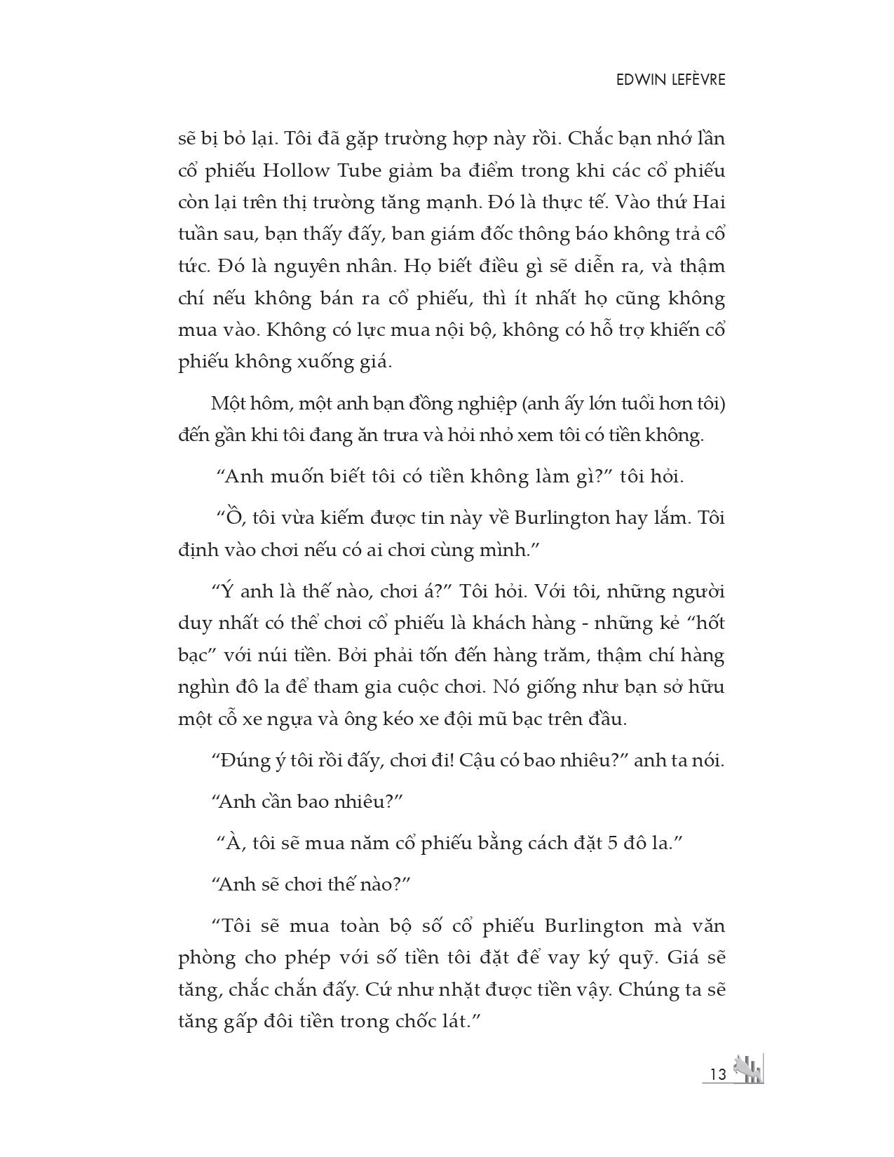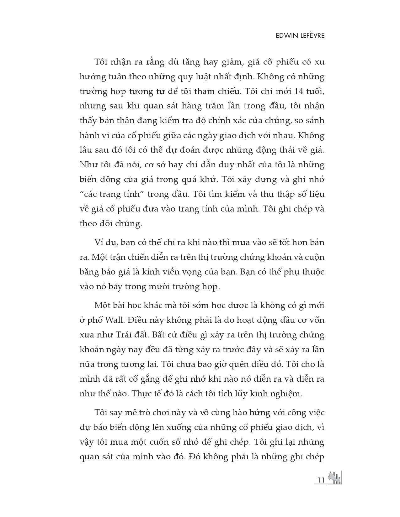 Cuốn sách kinh điển này vẽ nên bức chân dung hoàn chỉnh nhất của Jesse Livermore, từ cậu bé ghi bảng ở Boston đến nhà đầu cơ vĩ đại nhất phố Wall. Hơn 20 chương sách kể lại hành trình của Livermore để trở thành tiếng nói có ảnh hưởng nhất trên thị trường chứng khoán Mỹ vào thời của ông.