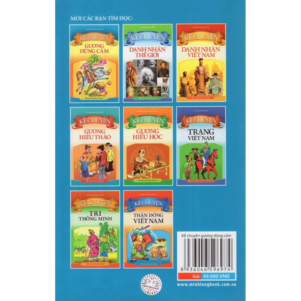 Mua tại TiktokTừ xưa đến nay, có rất nhiều những tấm gương hiếu học đáng để chúng ta noi theo. Cuốn sách Kể chuyện gương dũng cảm khắc hoạ, phản ánh một cách chân thực, sinh động những tấm gương dũng cảm cũng như những câu chuyện hết sức cảm động về tinh thần tương thân tương ái, về lòng thương người cũng như những đức tính tôố đẹp đáng noi gương.Cùng với sự trưởng thành về nhận thức, mỗi chúng ta sẽ tìm thấy trong những câu chuyện ấy nhiều điều mới mẻ hơn, sâu sắc hơn. Cuốn sách, là món quà vô cùng quý giá đối với các em học sinh .