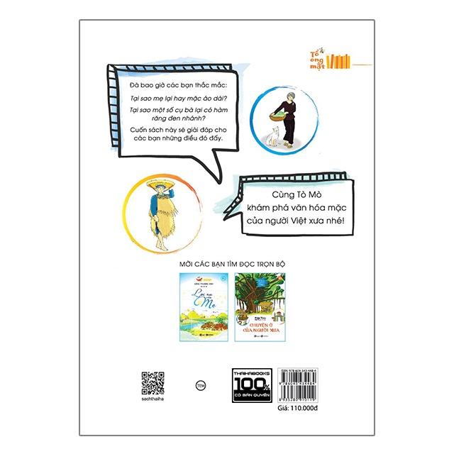 Với cuốn sách này, các bạn nhỏ sẽ được tìm hiểu khám phá những điều tuyệt vời về trang phục của dân tộc mình, được nghe kể câu chuyện về nguồn gốc nghề dệt vải, được tìm hiểu về các loại áo, váy, phụ kiện khác nhau, về các phong tục truyền thống như nhuộm răng, vấn tóc của người Việt xưa. Chắc hẳn các bạn sẽ rất ngạc nhiên khi biết chuyện trang phục, ngoại hình chưa bao giờ là chuyện đơn giản, phía sau đó là những câu chuyện và những giá trị văn hóa mà bao đời cha ông ta gìn giữ và phát triển. Mỗi phong tục đều thể hiện rất rõ con người đã ứng phó như thế nào với môi trường tự nhiên xung quanh. Sau đó là con người đã thích nghi ra sao với điều kiện lao động sản xuất.