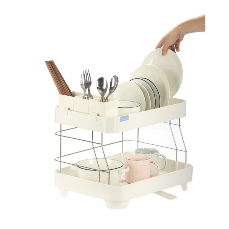 ✨Kệ Để Chén Bát Nhựa Inox 2 Tầng Inochi Có Khay Thoát Nước Thông Minh Dùng Để Làm Giá Úp Bát Đĩa Chén Đũa Trên Chậu Rửa ( Giao màu ngẫu nhiên ) - ANTH250