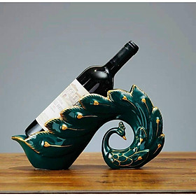 KỆ RƯỢU VANG CHIM CÔNG GỐM SỨ VẼ VÀNG