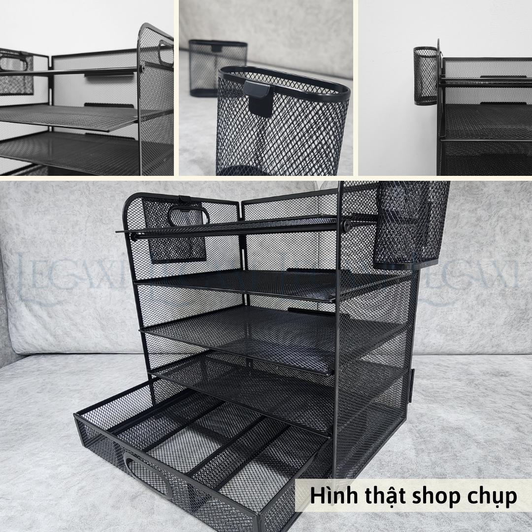 ✨Kệ đựng hồ sơ tài liệu giấy tờ kim loại để bàn 5 tầng kèm khay đựng bút thước gôm ghim bấm tủ kéo tiện dụng thông minh Legaxi