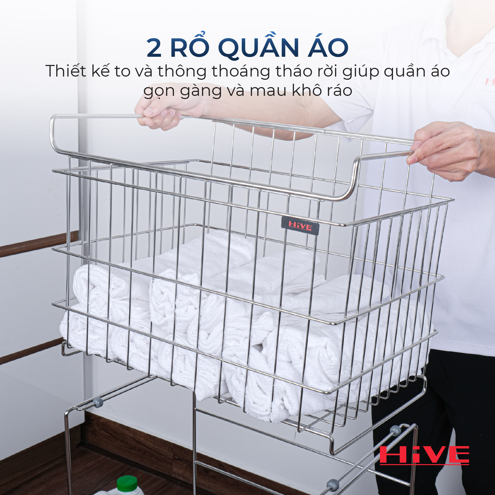 ✨Kệ (Giỏ) Đựng Đồ, Chia Quần Áo Phòng Giặt HiVE 2 tầng inox 304 cao cấp có bánh xe