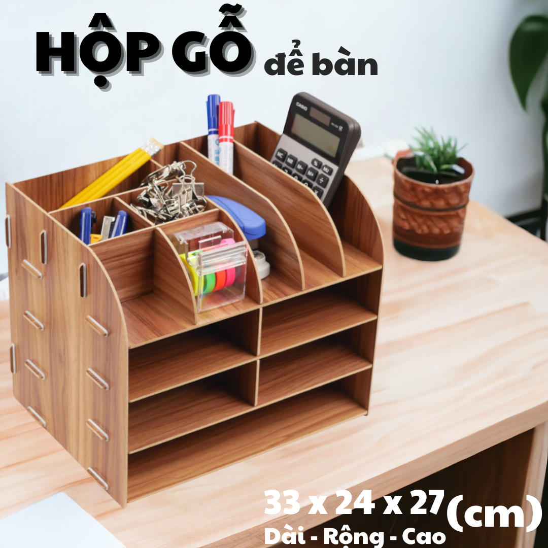 Mua tại TiktokHỘP ĐỰNG ĐỒ BẰNG GỖ CÓ NHIỀU NGĂN ĐỰNG ĐỒ - TỰ LẮP RÁP - ĐƠN GIẢN - NHANH CHÓNG Hộp đựng đồ bằng gỗ đặt ở bàn học hay văn phòng làm việc đựng được nhiều đồ. Sắp xếp đồ đạc ngăn nắp theo các ngăn, mở rộng không gian học tập và làm việc. Hộp gỗ tự lắp ghép cực kỳ đơn giản, hộp đựng đồ ngăn cao xuống thấp. Như hình thác nước giúp đựng đồ tiện lợi hơn, dễ tìm kiếm. Tăng thẩm mỹ khiến đồ đạc trở nên ngăn nắp hơn, gọn gàng và thẩm mỹ hơn. Đối với các không gian bàn học hay bàn làm việc giấy tờ, giấy note, viết, đồ vật nhỏ nhiều. Nên việc chuẩn bị một chiếc hộp đựng đồ là vô cùng cần thiết, khiến bạn thoải hơn trong việc cất giữ đồ cũng như tìm kiếm đồ. Hộp gỗ hình chữ nhật, độ cao các ngăn đựng đồ đa dạng kích thước, cao xuống thấp. Đa dạng ngăn đựng đồ đa dạng không gian cất giữ. Chi tiết hộp đựng đồ bằng gỗ tự lắp ghép: Kích thước: 33x24x27cm Trọng lượng: 1.6kg Chất liệu: ván dày dặn, vân gỗ PVC Ngăn đựng đồ ngang - dọc Hướng dẫn lắp ráp: Trong mỗi bao bì sản phẩm sẽ có giấy hướng dẫn lắp ráp cụ thể. Lắp theo các cạnh tương thích và cố định bằng dây chun. Chúng tôi mong muốn mang lại sản phẩm chất lượng và sự phục vụ tốt nhất đến quý khách hàng!!!
