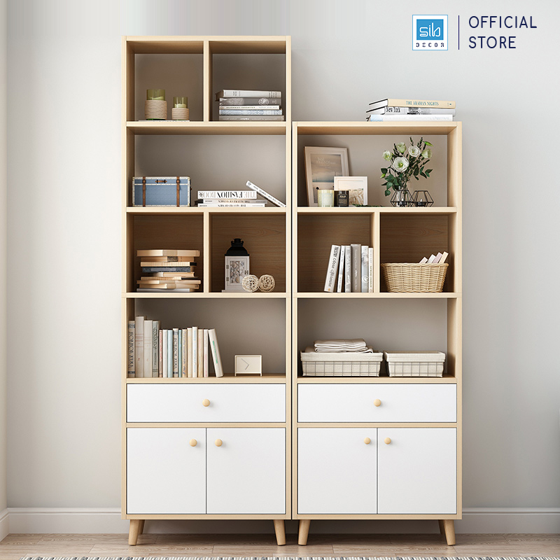✨Kệ Sách Gỗ Đứng Nhiều Ngăn Hiện Đại Màu Trắng Phối Vân Gỗ Sồi Thương Hiệu SIB Decor KSG39