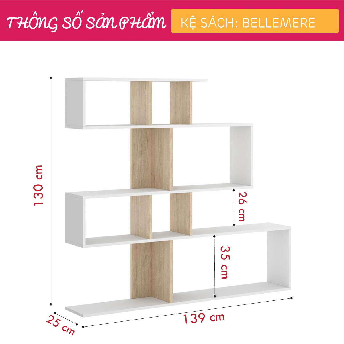 ✨Kệ sách, kệ trang trí gỗ hiện đại SMLIFE Bellemere | Gỗ MDF dày 17mm chống ẩm | D139xR25xC135cm