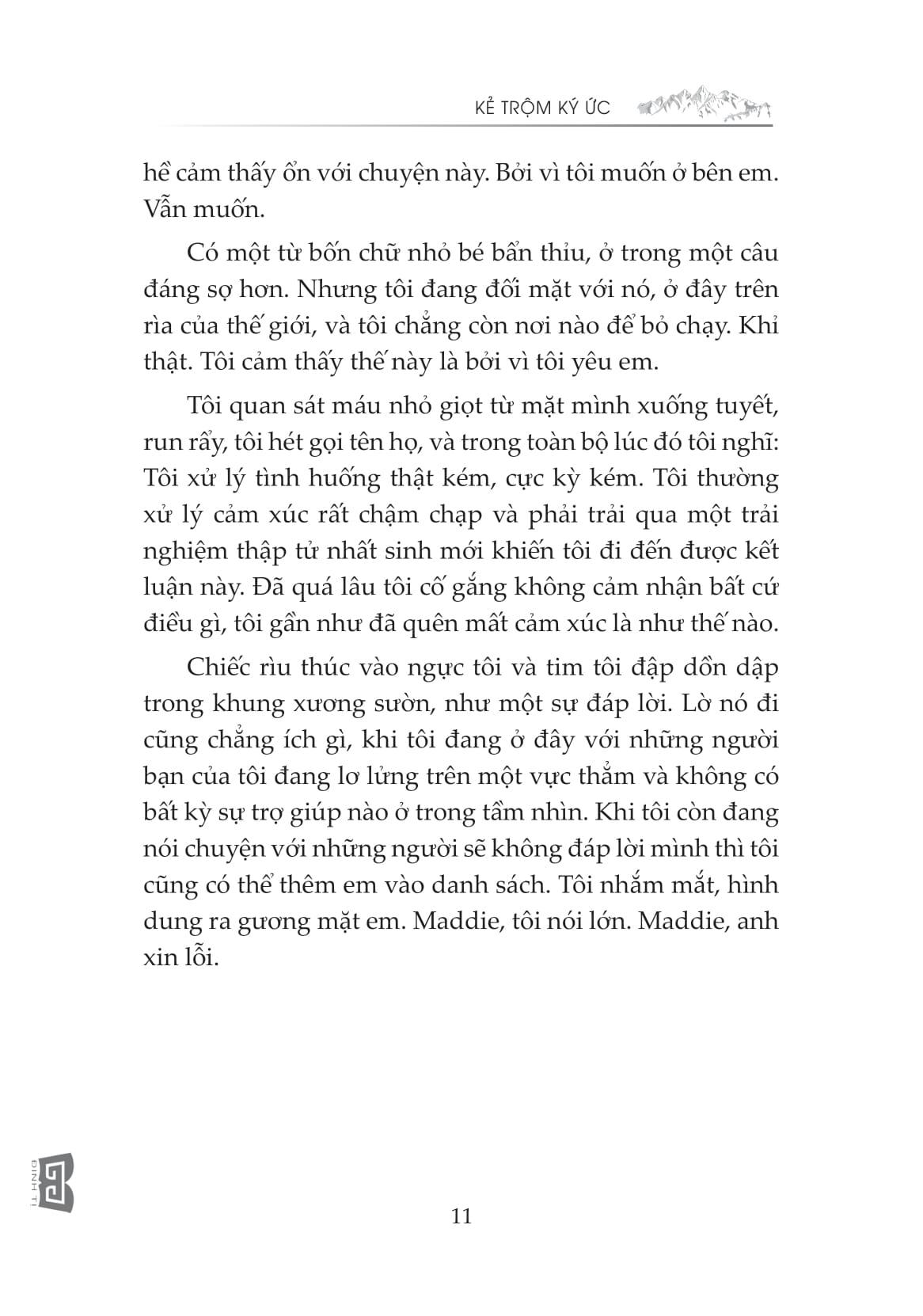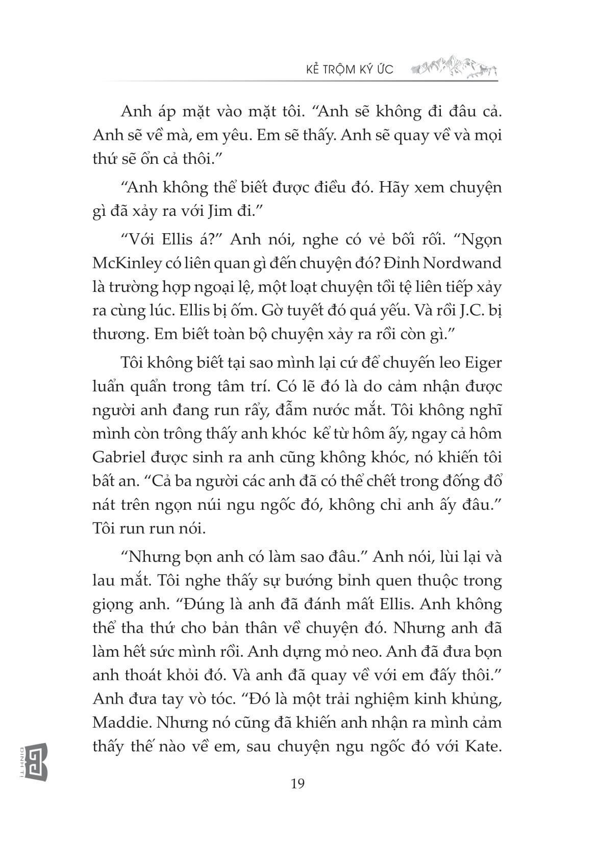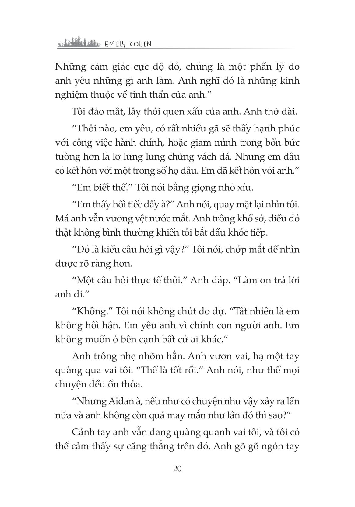 “Tôi lại thiếp đi khi đang suy nghĩ về cảm giác khi có được mọi thứ bạn muốn, chỉ để đánh mất nó… và biết điều bạn mong muốn, nhưng lại không có nó. Suy cho cùng, Aidan James và tôi quả là hai kẻ đối lập. Tất nhiên chúng tôi cũng còn một sự khác biệt quan trọng khác nữa: Tôi vẫn đang còn sống.”