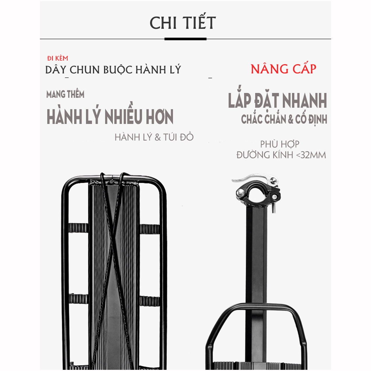 Kệ Yên Sau Gác Baga dododios Gắn Thêm Phía Sau Cho Xe Đạp Vào Cốt Yên cho xe đạp địa hình và leo núi Kệ Yên Sau Gác Ba Ga dododios Gắn Thêm Phía Sau