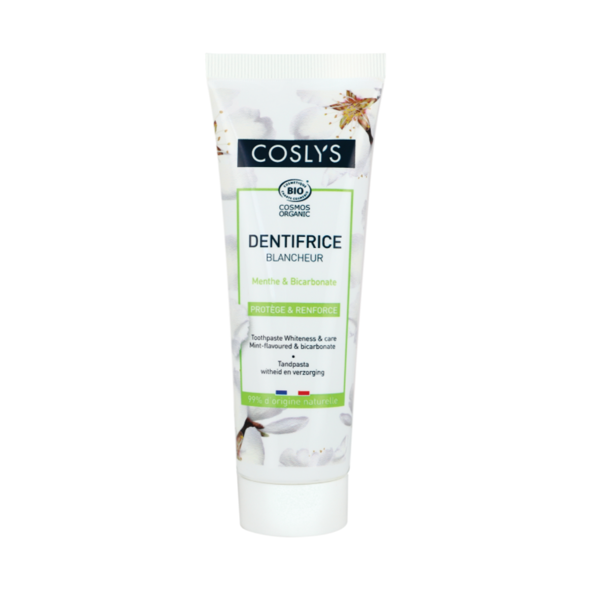 Mua tại TiktokChứng nhận hữu cơ Ecocert Chứng nhận Hữu cơ bởi Cosmos Organic ️Thương hiệu: Coslys - Pháp Kem đánh răng hữu cơ làm trắng răng hương hoa Coslys với mùi hương hoa cỏ ngọt, thành phần được làm giàu với bicarbonate và lô hội sẽ nhẹ nhàng đánh bóng răng, đồng thời củng cố men răng.