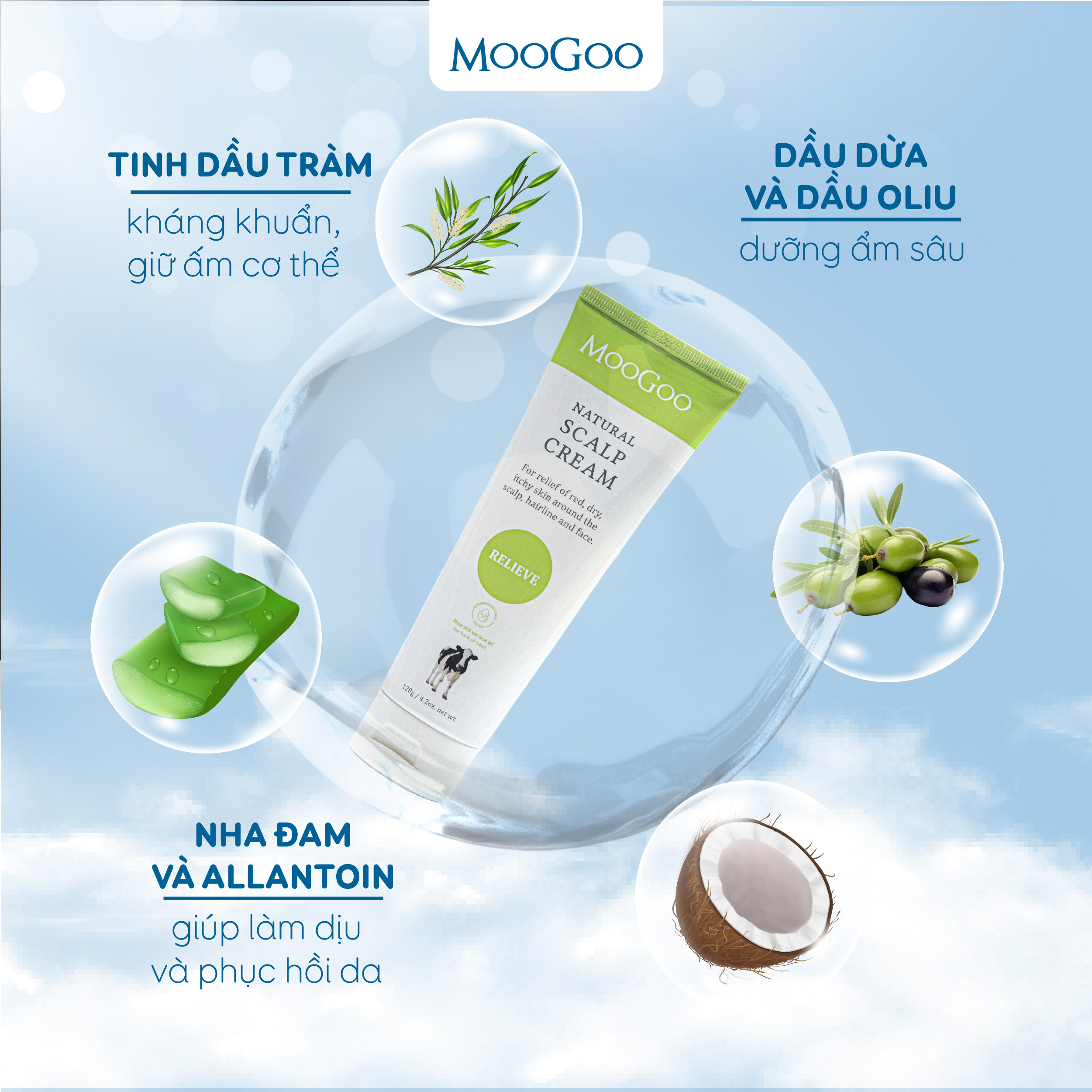 Kem dưỡng ẩm giữ ấm, hỗ trợ điều trị viêm da đầu tiết bã MooGoo Scalp Cream 120g là một sản phẩm dưỡng ẩm tự nhiên nhưng đồng thời được bổ sung các tác dụng chính giúp làm dịu, cải thiện tình trạng viêm da tiết bã nhờn và trả lại làn da khỏe mạnh ở các khu vực như vùng da đầu, chân tóc, cổ , cổ tay. cổ chân hoặc vùng da xung quanh mũi và miệng . Kem trị viêm da tiết bã MooGoo cho mọi lứa tuổi và kể cả trẻ sơ sinh, viêm da cơ địa