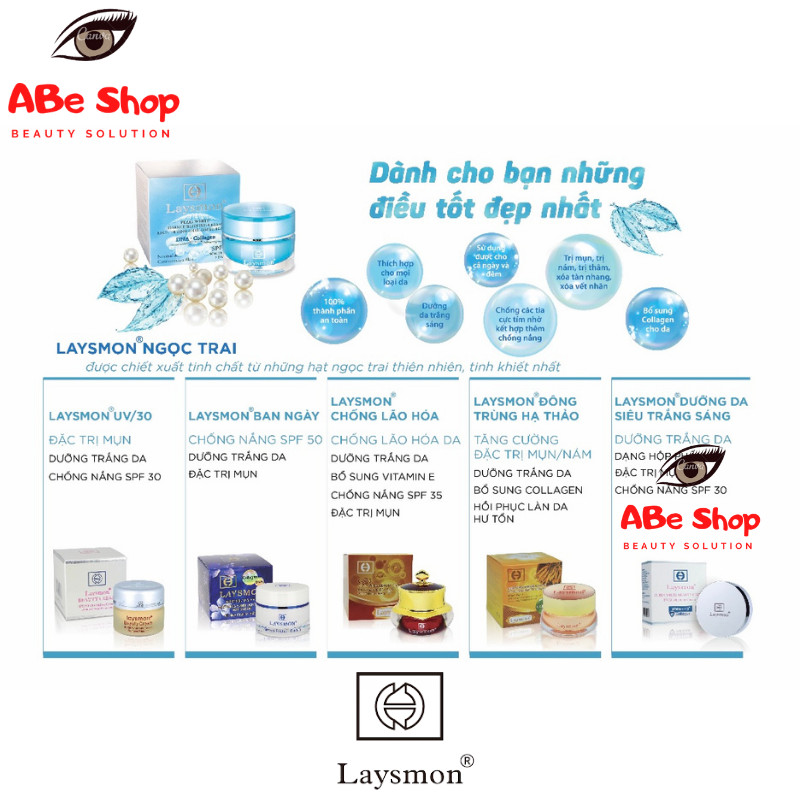 • Kem trắng da mặt LAYSMON UV/30 với thành phần hoàn toàn tự nhiên không gây kích ứng da, phù hợp với mọi loại da.