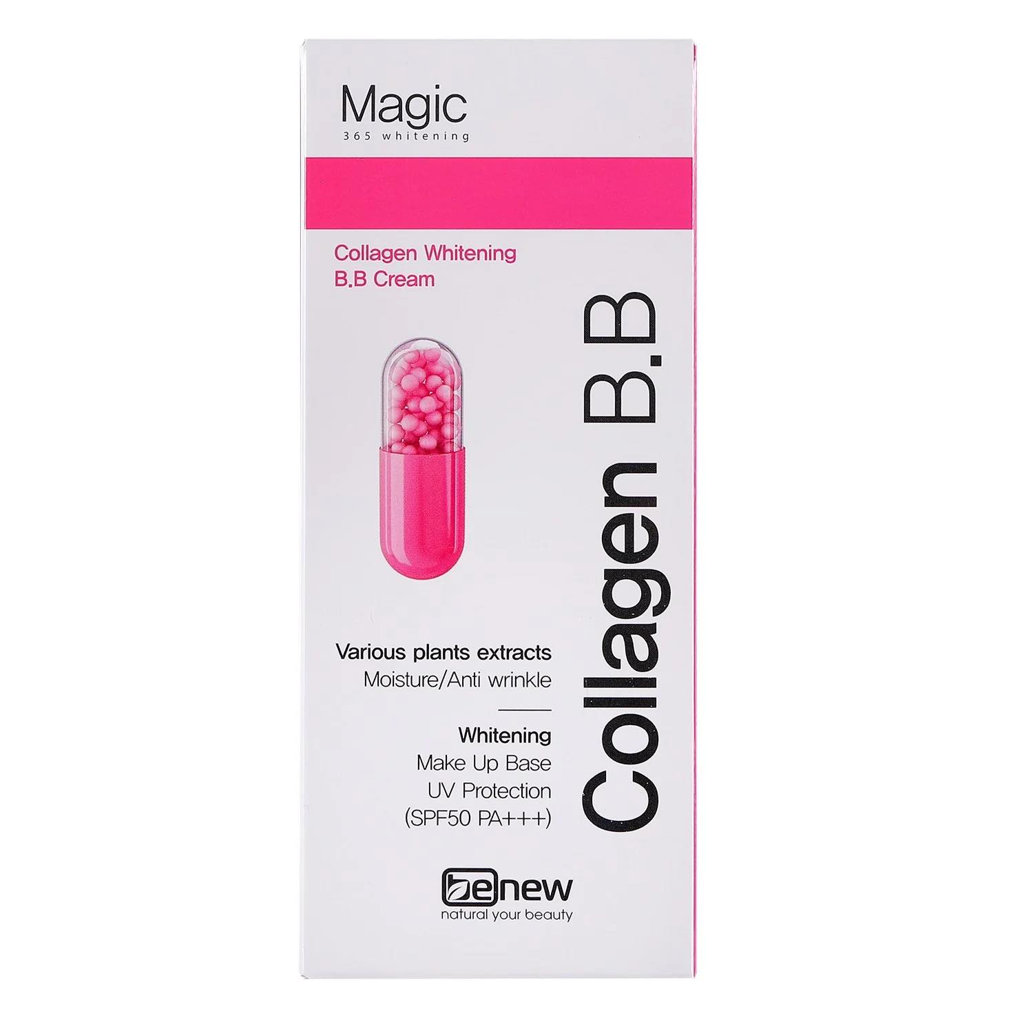 Kem trang điểm Benew Magic Snow White chiết xuất từ Sáp ong, bột ngọc trai mang lại sức mạnh vượt trội với tính năng 3 in 1: Kem trang điểm, kem lót nền, kem che khuyết điểm hoàn hảo giúp che phủ cực tốt các khuyết điểm trên da. Ngoài ra kem B.B BENEW còn có tác dụng: Dưỡng trắng da, Chống nắng, Chống nhăn, Dưỡng ẩm...vì thế khi sử dụng, làn da vừa được che phủ các khuyết điểm mà vẫn tự nhiên, càng xoa đều càng thấm vào da giúp dưỡng ẩm da một cách hài hòa.