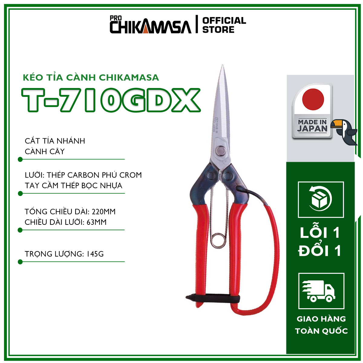 ✨Kéo tỉa cành cao cấp Nhật Bản Chikamasa T-710GDX