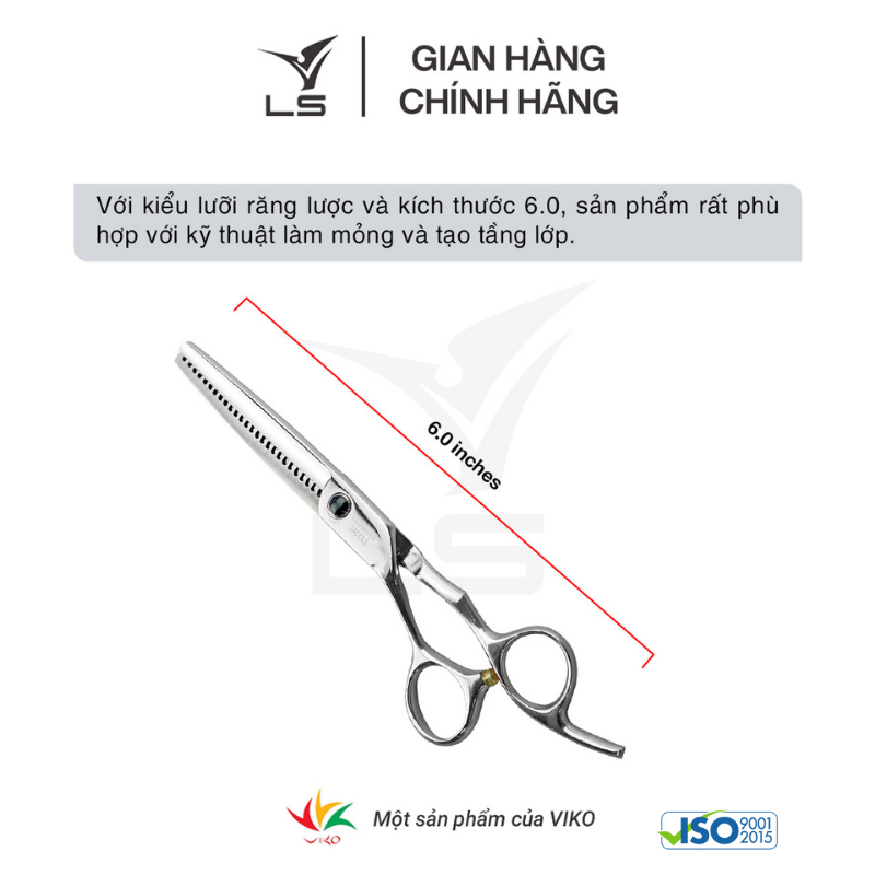 - Với kiểu lưỡi răng lược và kích thước 6.0 inches, kéo tỉa tóc LS T3226L phù hợp làm mỏng và tạo tầng tóc