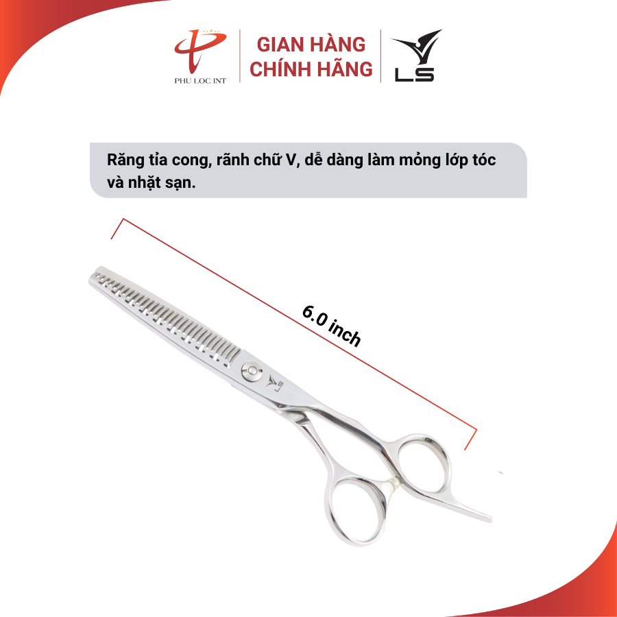 Với kiểu lưỡi răng lược và kích thước 6.0, sản phẩm rất phù hợp với kỹ thuật làm mỏng và tạo tầng lớp. Dòng kéo cắt tóc cao cấp LS luôn đảm bảo chất lượng (cắt không chạy tóc). Sản phẩm được đánh bóng qua gần một trăm bước vì vậy rất bóng, mịn và sang trọng.