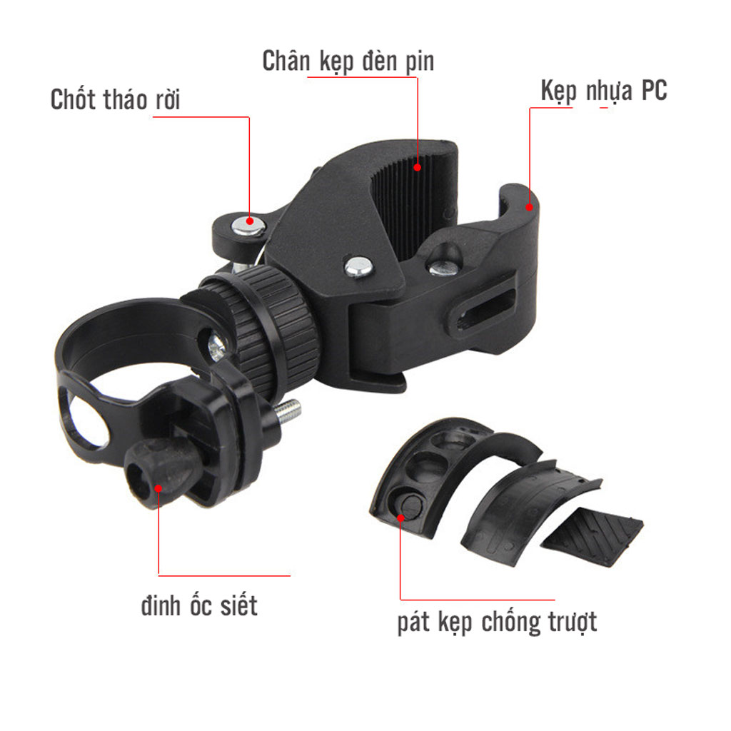 Chân đế kẹp đèn pin xe đạp KAVI chất liệu nhựa ABS gắn đèn pin lên tay lái xe đạp xoay 360 độ - KAVI