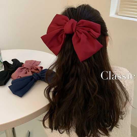 ✨Kẹp tóc gắn nơ thắt ruy băng vải chiffon và satin mềm mại cỡ lớn kiểu dáng cổ điển cho nữ