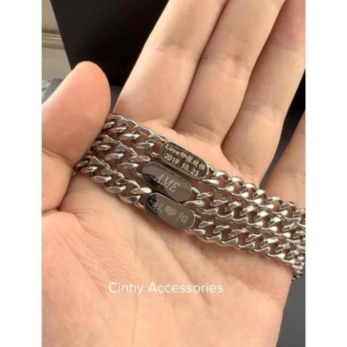 Nhẫn inox theo tên được thiết kế kiểu bản tinh xảo xinh xắn được khắc laser công nghệ hiện đại bật nhất hiện nay với nội dung tên, họa tiết vô cùng đáng yêu. Nhẫn