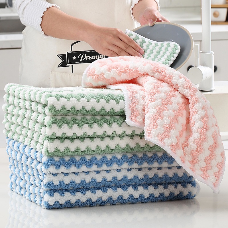 KHĂN LAU ĐA NĂNG 2 MẶT VIỀN SÓNG SIÊU THẤM TIỆN DỤNG Giữ nhà bếp sạch sẽ là việc làm rất quan trọng. Hầu như tất cả chúng ta đều có hành động vệ sinh