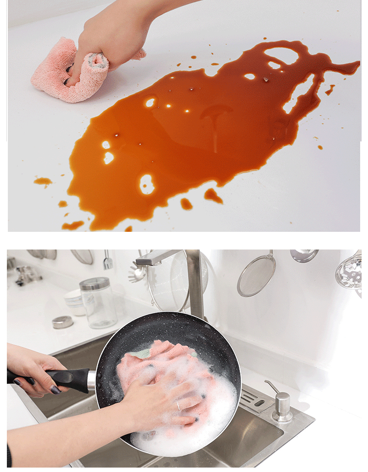Khăn lau đa năng nhà bếp rất tiện ạh: lau bát đũa, lau mặt bếp, lau dọn tủ... Em muốn nhấn mạnh là chất liệu của loại khăn này - chất liệu Microfiber - nổi