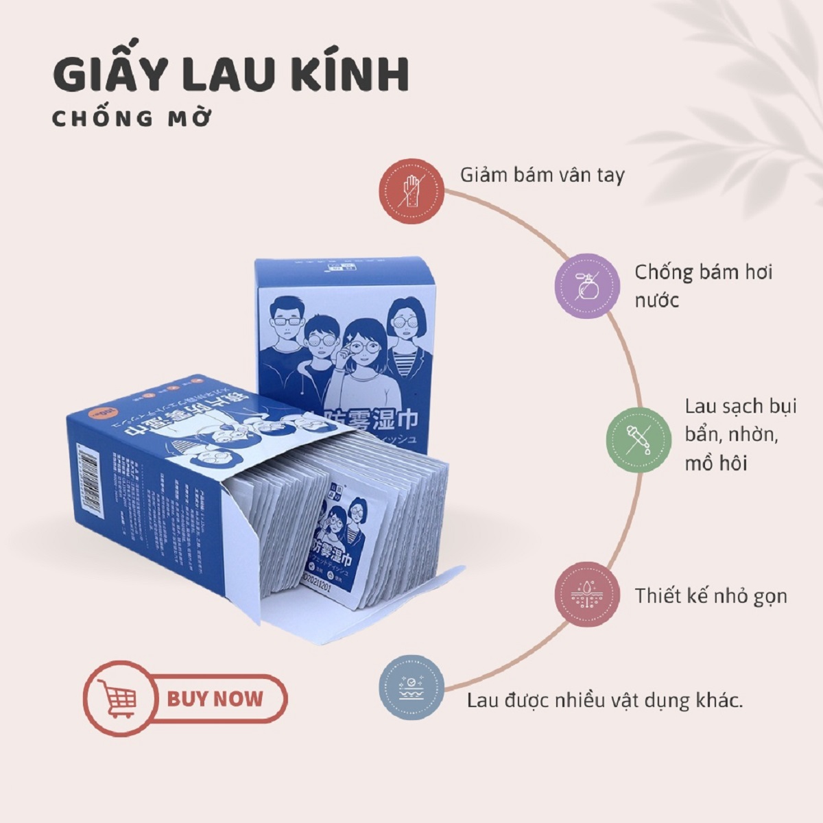 • Mỗi miếng giấy có tẩm dung dịch cồn lau sạch mắt kính sáng bóng, trong veo, bảo vệ tầm nhìn của mắt .