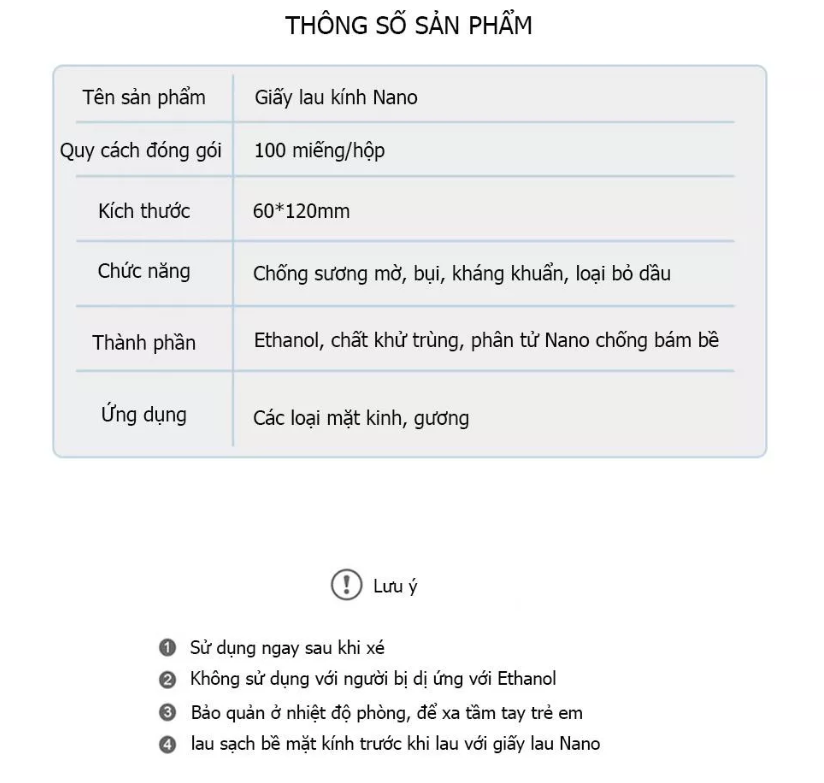 Hộp 100 Miếng Giấy Lau Kính Nano Chống Bám Hơi Nước, Lau Sạch Nhờn Vân Tay, Bụi Bẩn