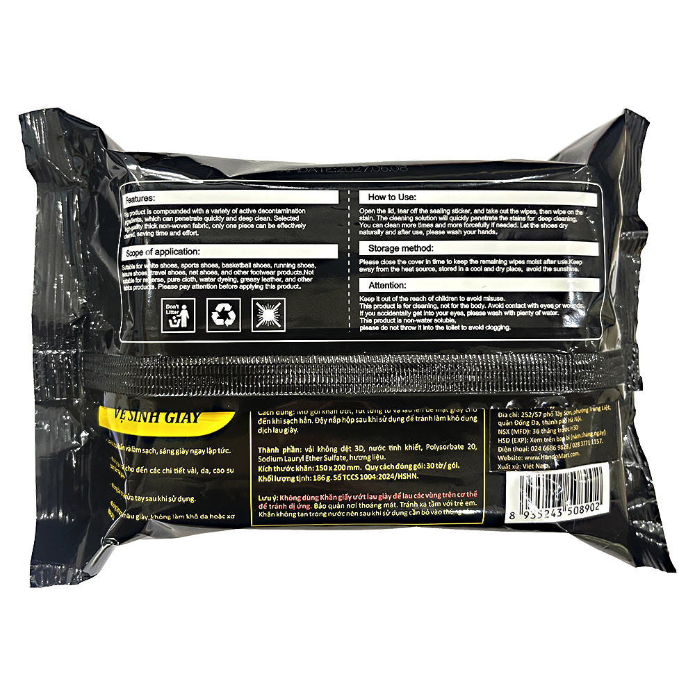 Mua tại TiktokMô tả sản phẩm Tác dụng, tính năng Khăn lau vệ sinh giày Hando