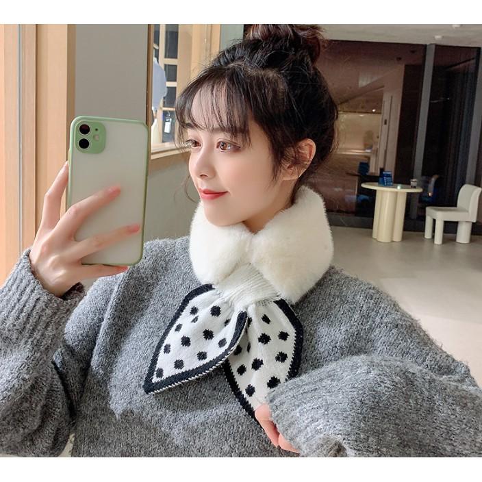 Khăn quàng cổ lông thỏ phối len thắt nơ ấm áp phong cách thời trang Dành Cho Nữ hot nhất 2020