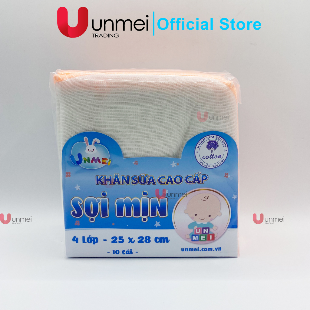 Khăn sữa Unmei 100% cotton cao cấp tiêu chuẩn xuất Nhật, dành cho trẻ sơ sinh. An toàn cho bé, được các mẹ trên toàn quốc tin dùng. - Đường viền của khăn cuốn biên bằng sợi chỉ tơ mềm mại an toàn cho bé.
