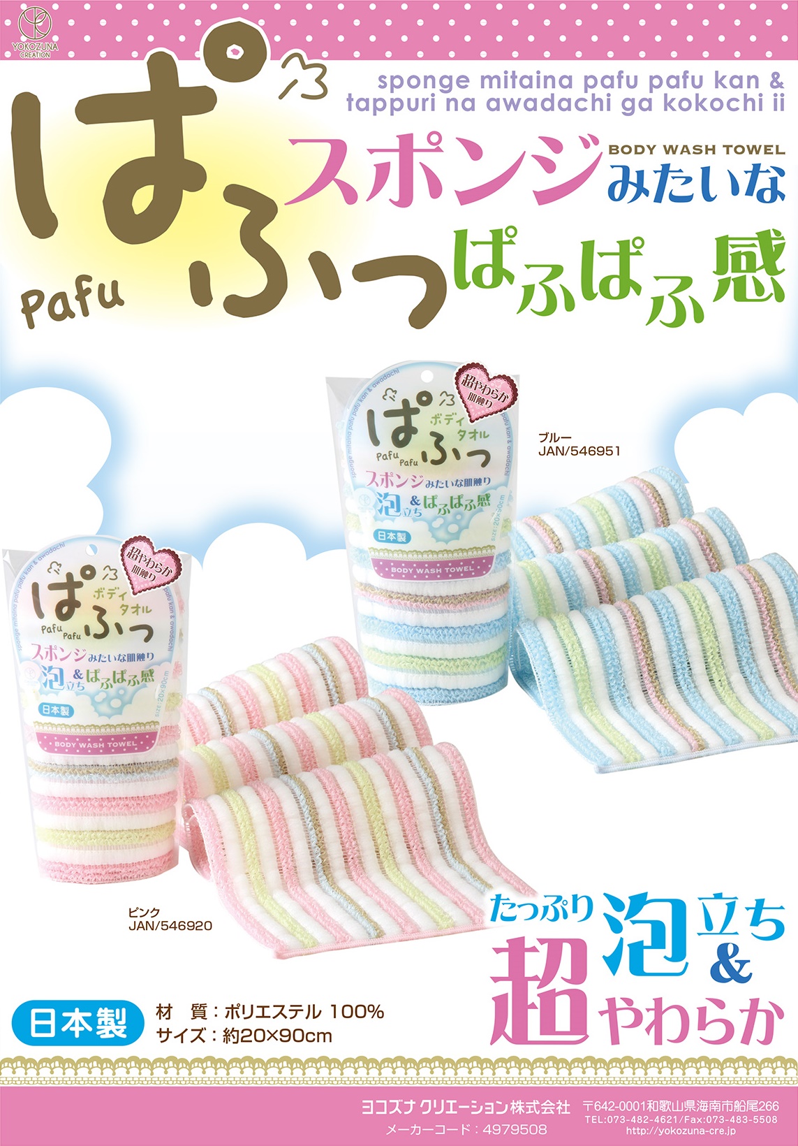 Khăn tắm kỳ lưng Yokozuna Puff 20x90cm ■ Xuất xứ: Nhật Bản | MADE IN JAPAN ■ NSX: Yokozuna Creation Co., Ltd (Japan) ■ Kích thước: 22 x 90cm ■ Màu sắc: Màu hồng | Màu xanh ( Giao ngẫu