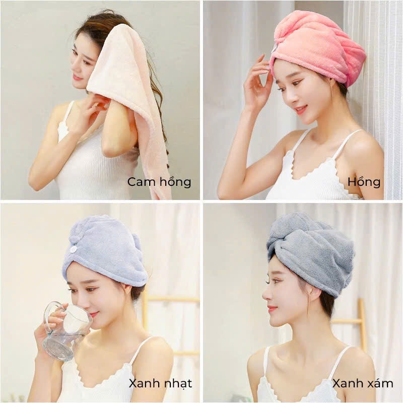 Khăn Ủ Tóc Quấn Đầu Nhanh Khô Siêu Thấm Nước, Khăn Chùm Đầu Làm Khô Tóc Nhanh Chóng sau Gội