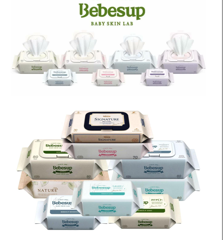 - BEBESUP là loại khăn ướt cho cho trẻ em , được bình chọn là sản phẩm có lượng tiêu thụ cao trong tất cả các sản phẩm khăn ướt của Bebesup. Sản phẩm được làm bằng vải dập nổi độ dày 50gsm, chứa chiết xuất từ những thực phẩm xanh, để giữ cho làn da của bé sạch sẽ và không gây kích ứng. Chất liệu: