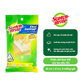 ✨Khăn ướt thay thế cây lau siêu tốc Scotch Brite 3M, 28 cm x 21cm, 8 miếng/gói, kháng khuẩn 99,9%, hương trà xanh thơm mát, tĩnh điện giúp hút và giữ bụi bẩn, tóc,… , phù hợp với nhiều bề mặt