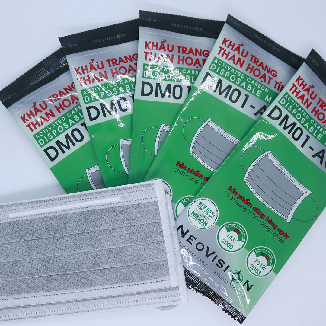 Mua tại TiktokCấu tạo khẩu trang y tế than hoạt tính NeoVision DM01- AC Khẩu trang than hoạt tính NeoVision DM01-AC (cái) là một trong những sản phẩm khẩu trang dùng một lần phổ biến, được nhiều người tiêu dùng ưa chuộng. Khẩu trang than hoạt tính DM01 bao gồm 4 lớp: