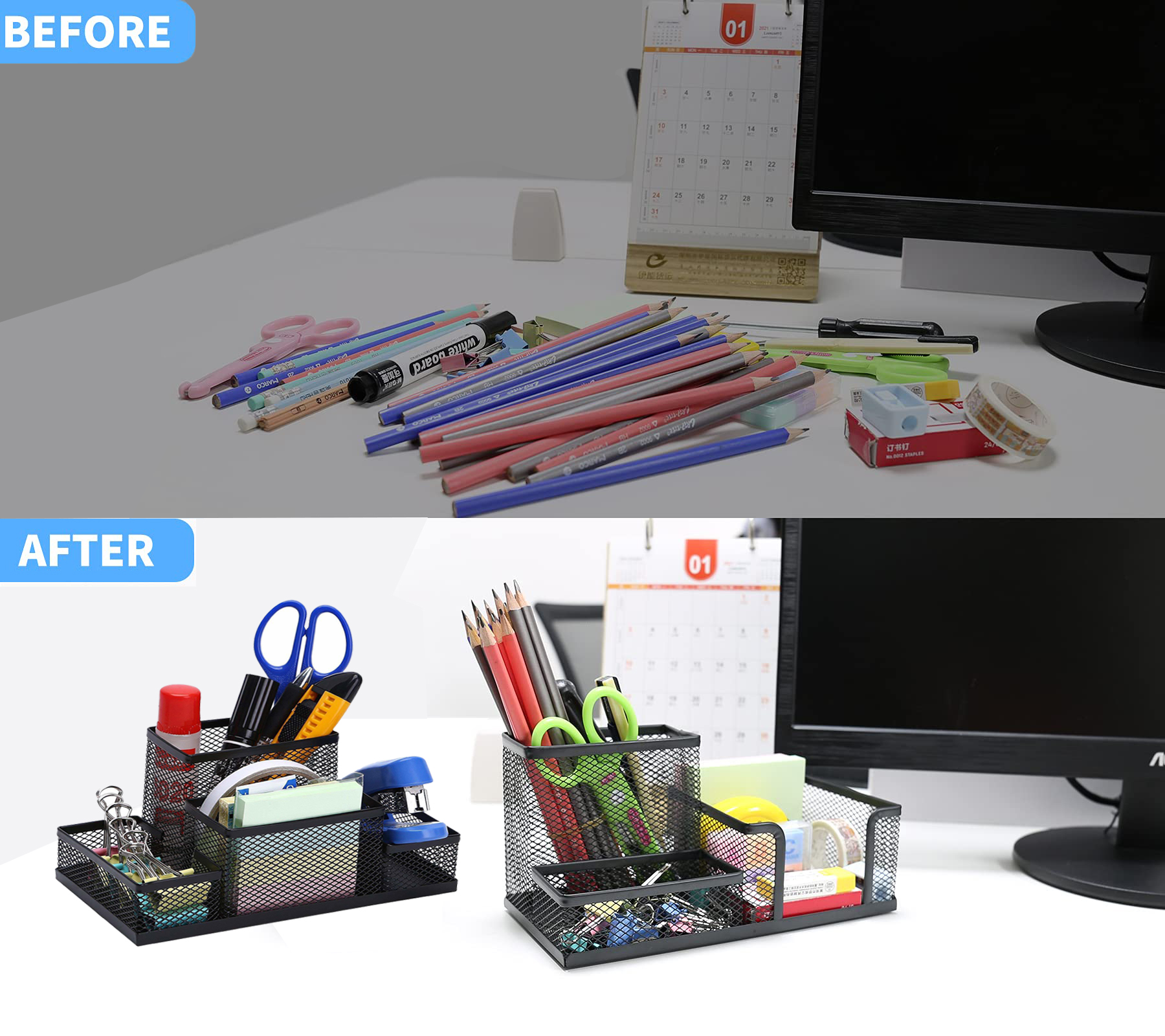 - Sản phẩm được làm từ sắt sơn tĩnh điện, thanh lịch và trang nhã, nhiều màu sắc lựa chọn - Ống cắm bút dạng lưới khô thoáng, tránh ẩm mốc. - Cắm bút giúp