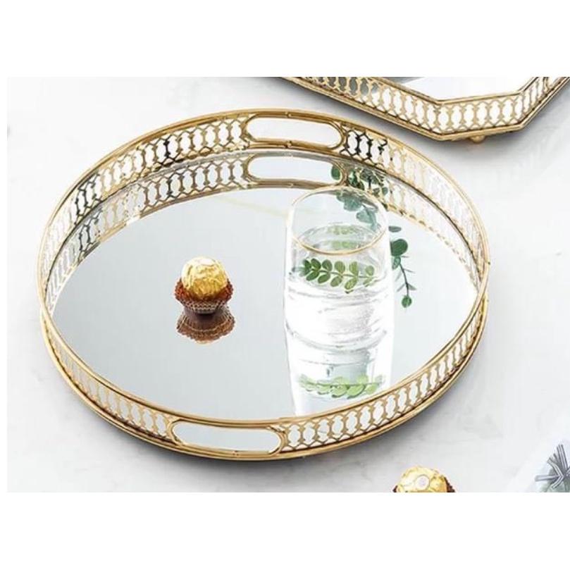 ✨Khay đựng ly cốc khung kim loại mạ vàng đáy gương