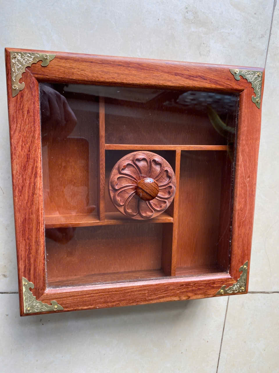 ✨Khay Đựng Mứt Tết Bánh Kẹo Vuông 5 Ngăn Gỗ Gõ Tự Nhiên-DAICAT - Hình lục giác Chữ Phúc Lộc Thọ