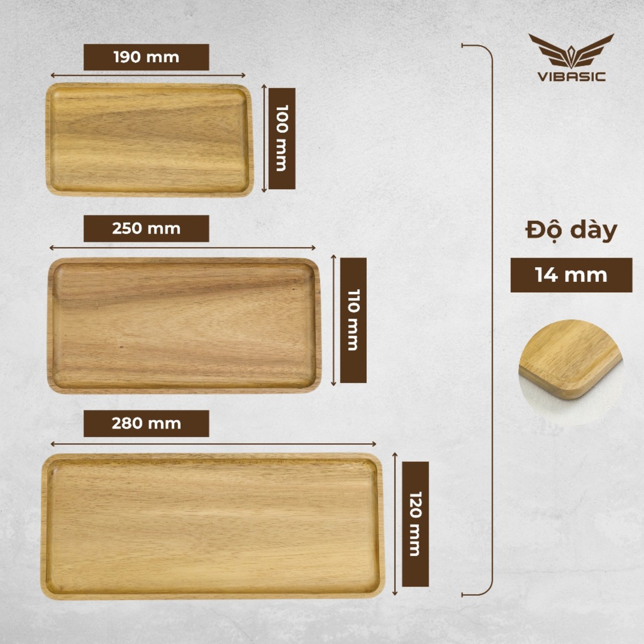 ✨Khay gỗ keo đa năng hình chữ nhật Vibasic, đa dạng kích thước, chụp hình decor đựng đồ trang trí
