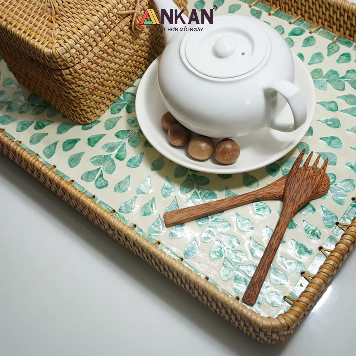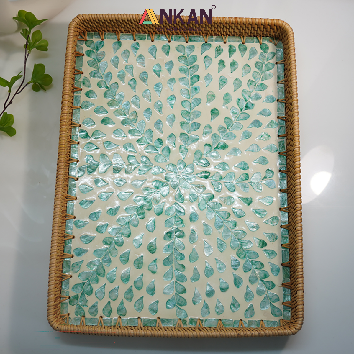 Khay Mây Khảm Trai Thủ Công ANKAN – Decor Trang Trí Nhà Cửa, Đựng Bánh Kẹo, Trái Cây