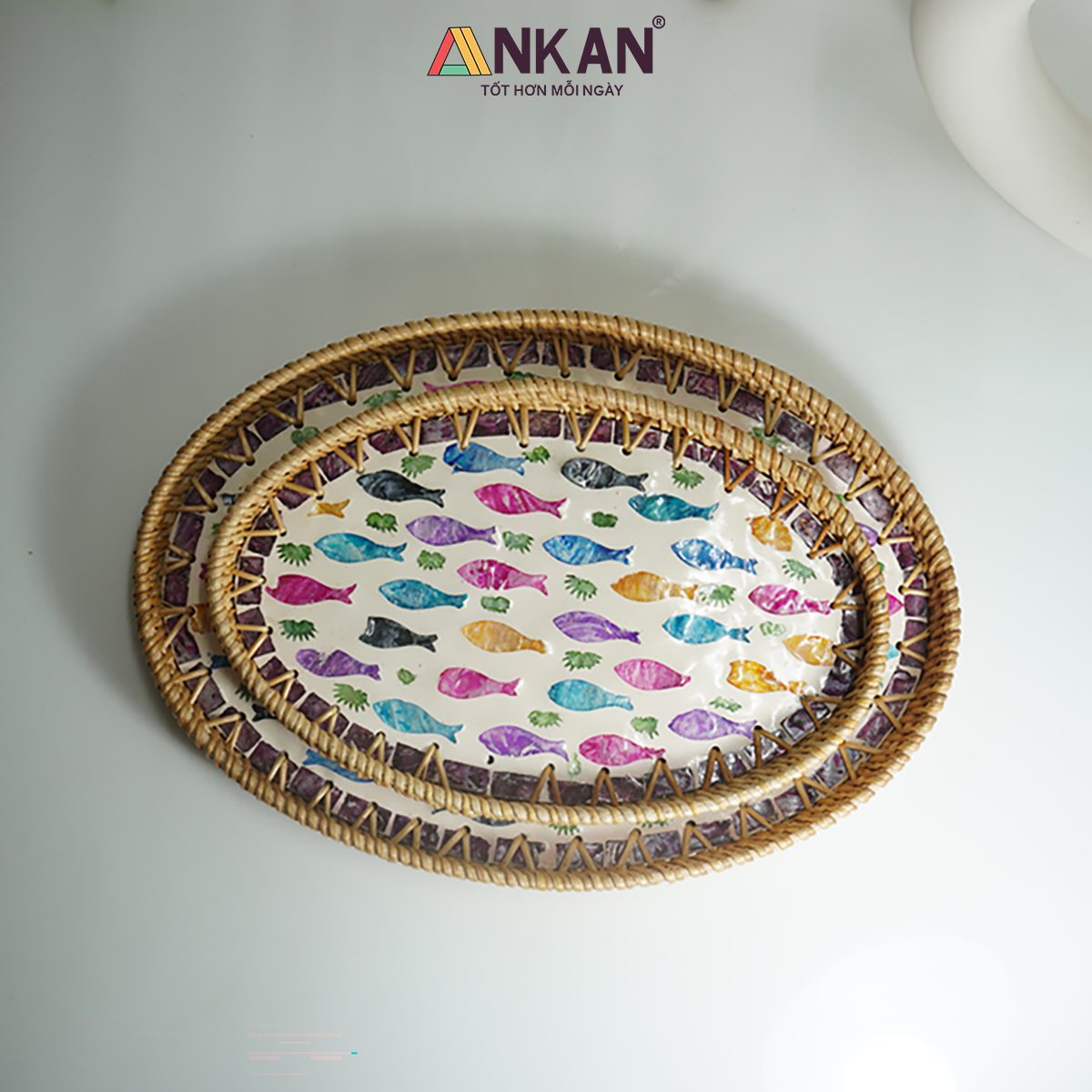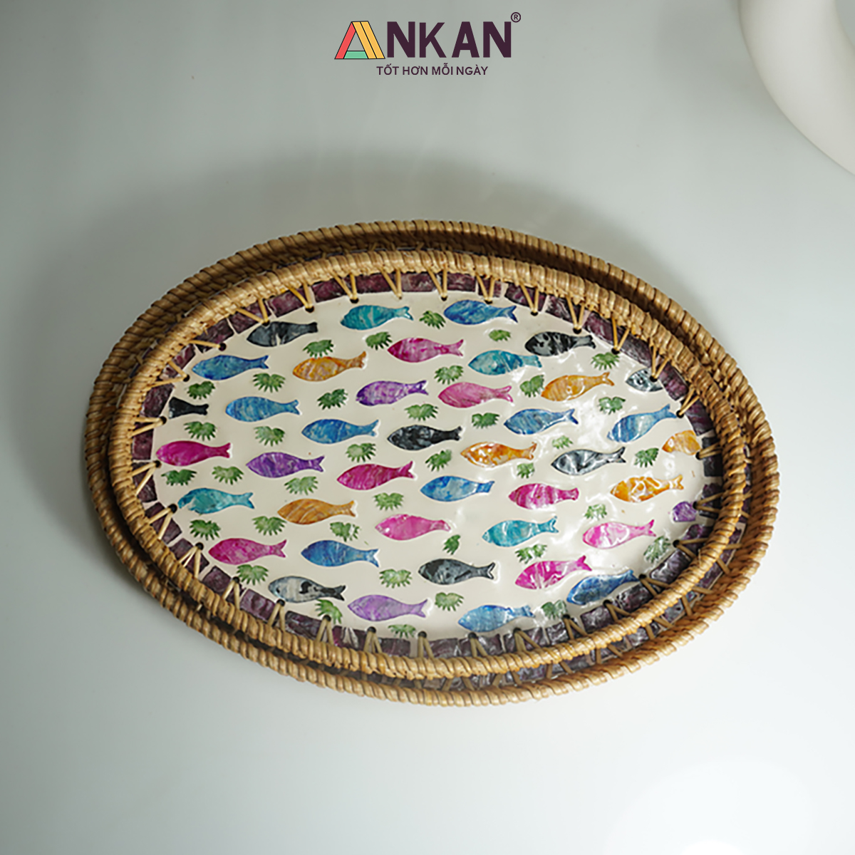 ✨Khay Mây Ovan Khảm Trai Cá Cầu Vồng – Hàng Thủ Công Mỹ Nghệ Việt Nam