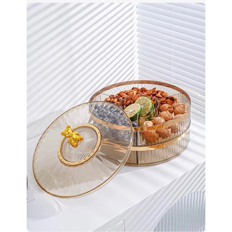 Khay Mứt Tết Pha Lê Trong Suốt, Xoay 360 Độ Cao Cấp Phong Cách Châu Âu Trang Trí Ngày Tết - Hộp Đựng Bánh Kẹo - Hàng Loại 1 - Chính Hãng MINIIN Thủy tinh