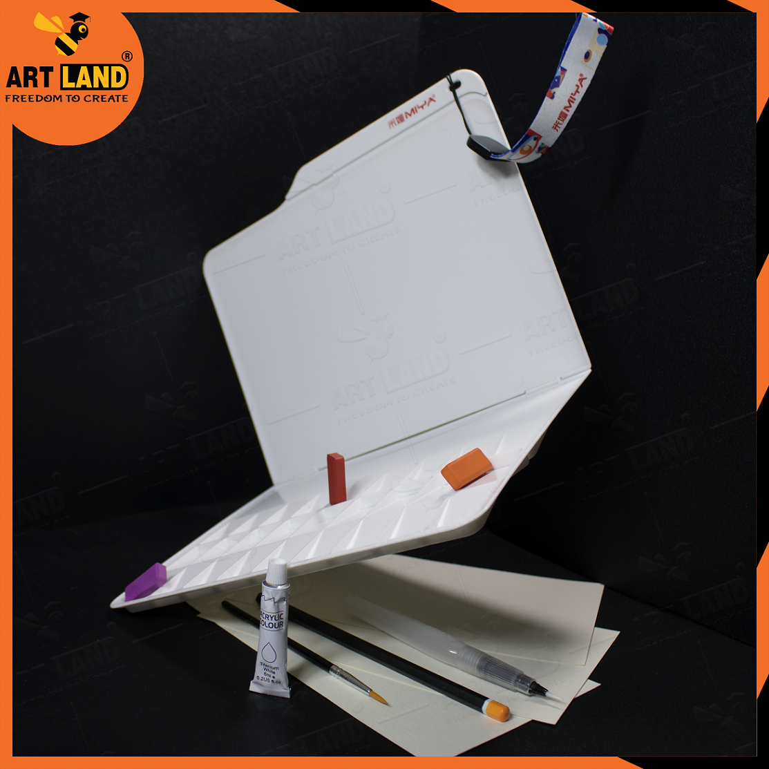 - Palette gấp gọn tiện dụng có phần gờ nhô cao bao quanh palette tránh cho màu bị đổ ra ngoài.
