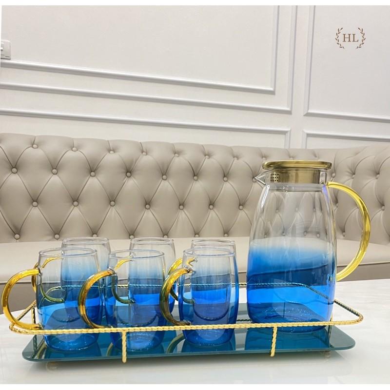 Bộ khay bình nước 6 cốc thuỷ tinh cao cấp